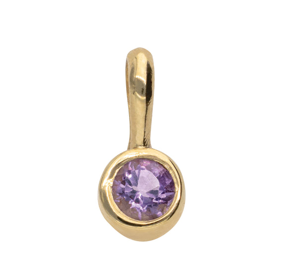 Piedra amatista, piedra tradicional que simboliza serenidad, sabiduría y equilibrio. Una gema elegante que inspira calma y claridad. Si naciste en febrero, este dije es perfecto para ti."